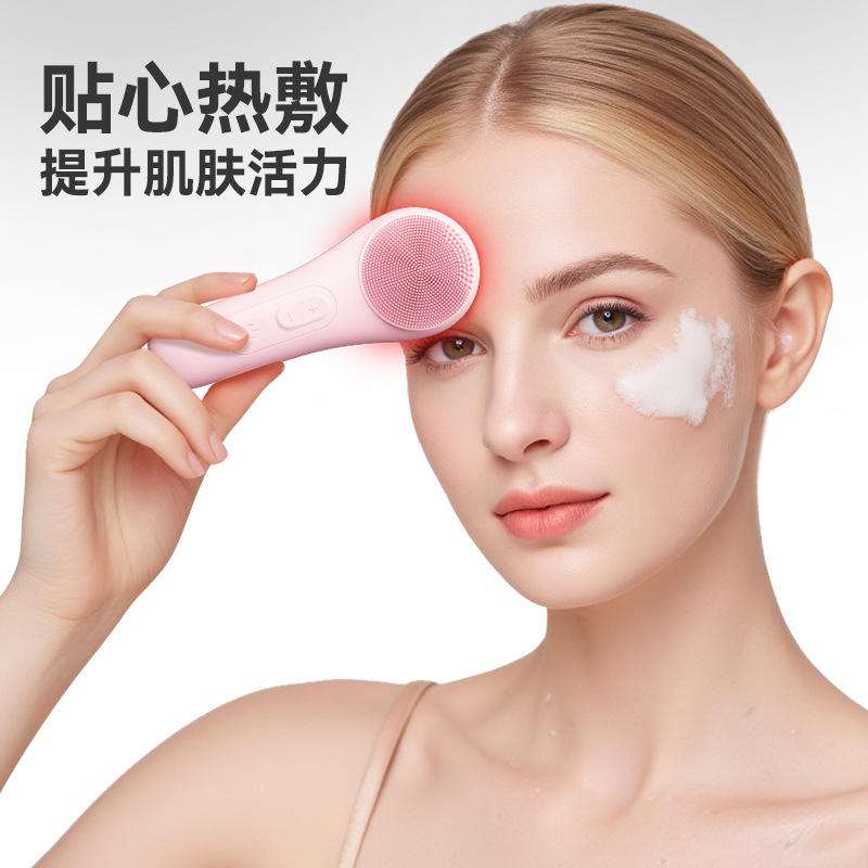 工厂定制洗脸仪防水硅胶洗脸刷超声波按摩美容仪器热敷电动洁面仪