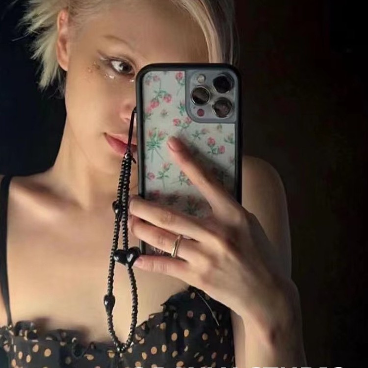 rose朴彩英Lisa同手腕串珠手机黑白色桃心手机挂饰蓝桃心 Yk