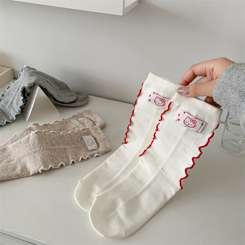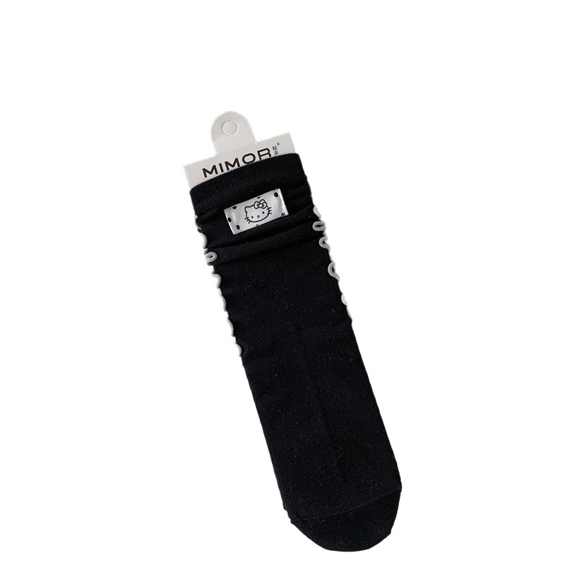 卡通KT猫女袜子秋冬新款精梳棉中筒袜miu系堆堆袜jk卷边布标女袜