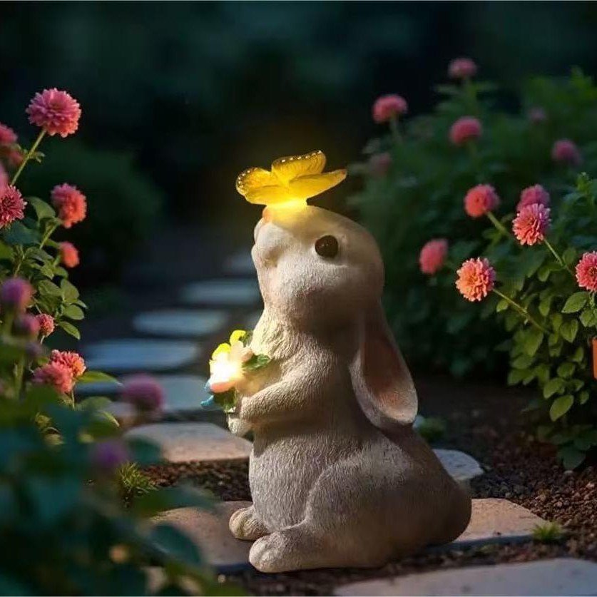 色温太阳能兔子抱花戏蝴蝶(暖色灯)