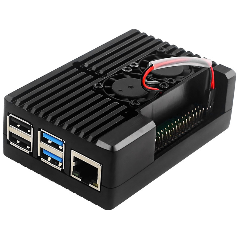 树莓派4B 双风扇铝合金外壳 Raspberry Pi 4B 条纹型散热保护盒