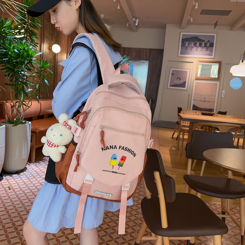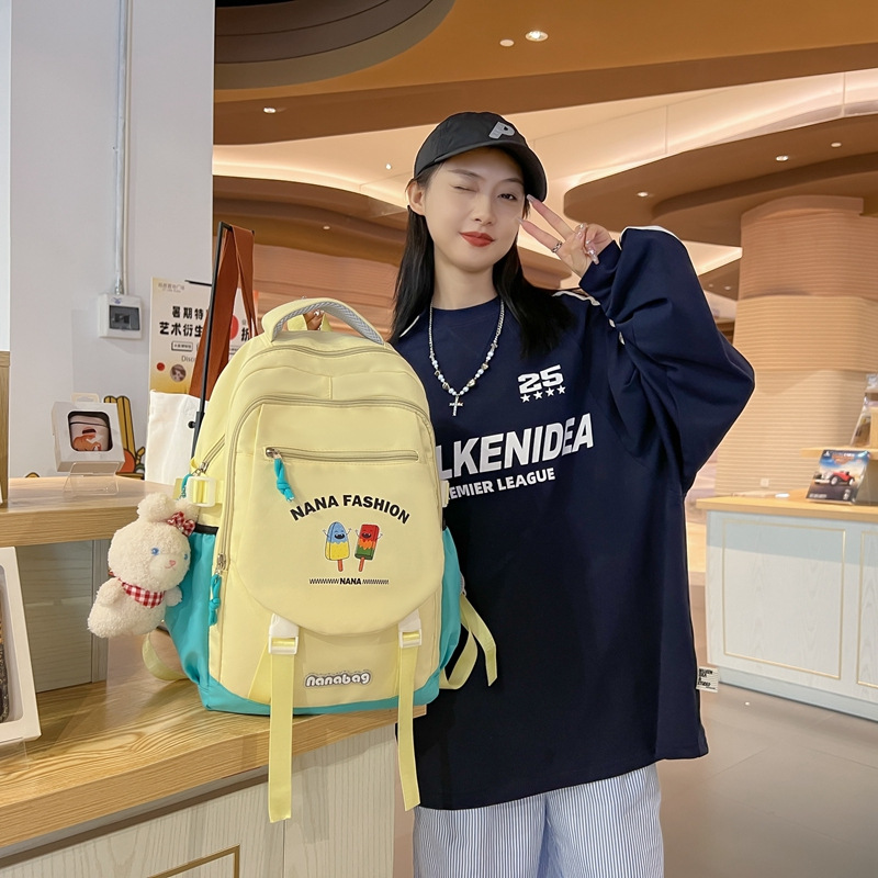 校园多巴胺拼色学生书包女初高中大学生双肩背包2025新款