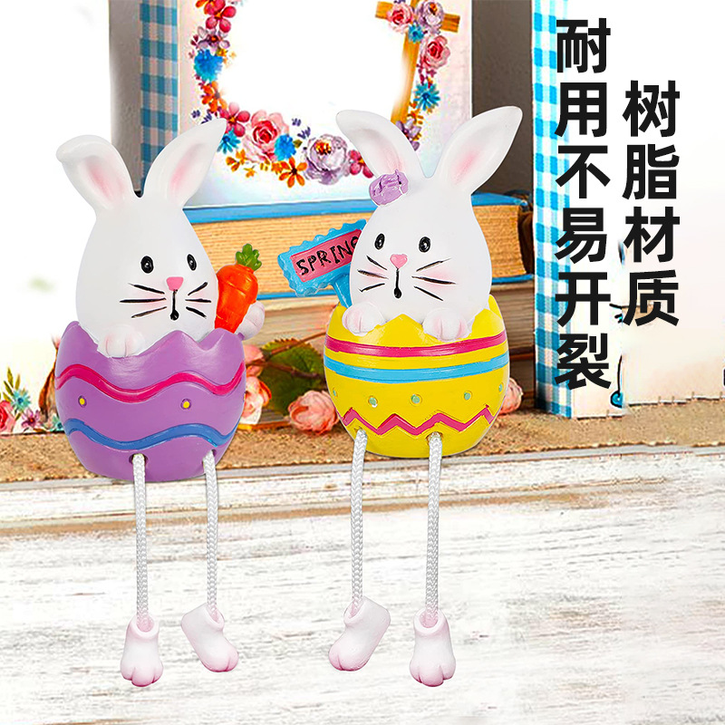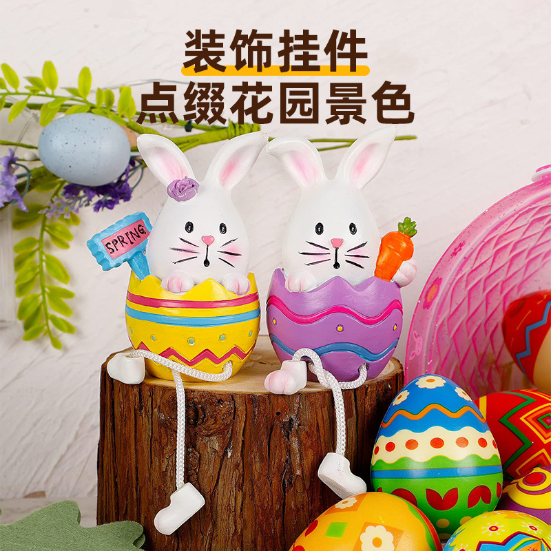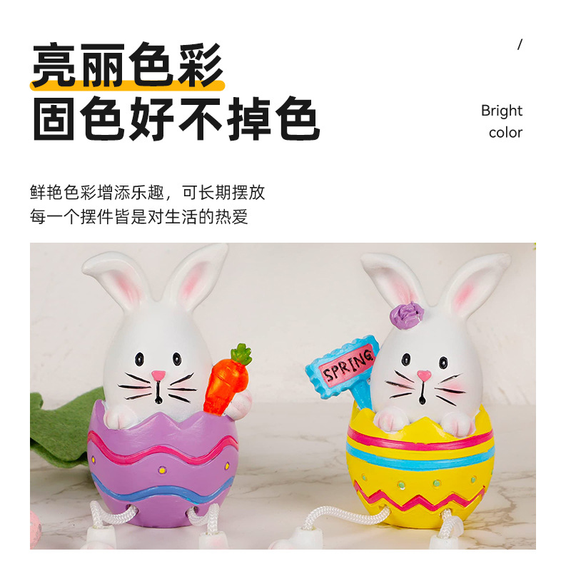 跨境热销复活节缤纷彩蛋兔子装饰手工树脂工艺品雕塑窗台桌面摆件