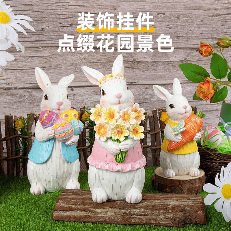 跨境新款复活节彩蛋萝卜可爱小兔子家居装饰品室内摆件树脂工艺品