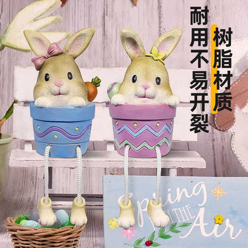 复活节卡通兔子花盆园艺雕塑家居装饰品花园庭院幼儿园工艺摆件