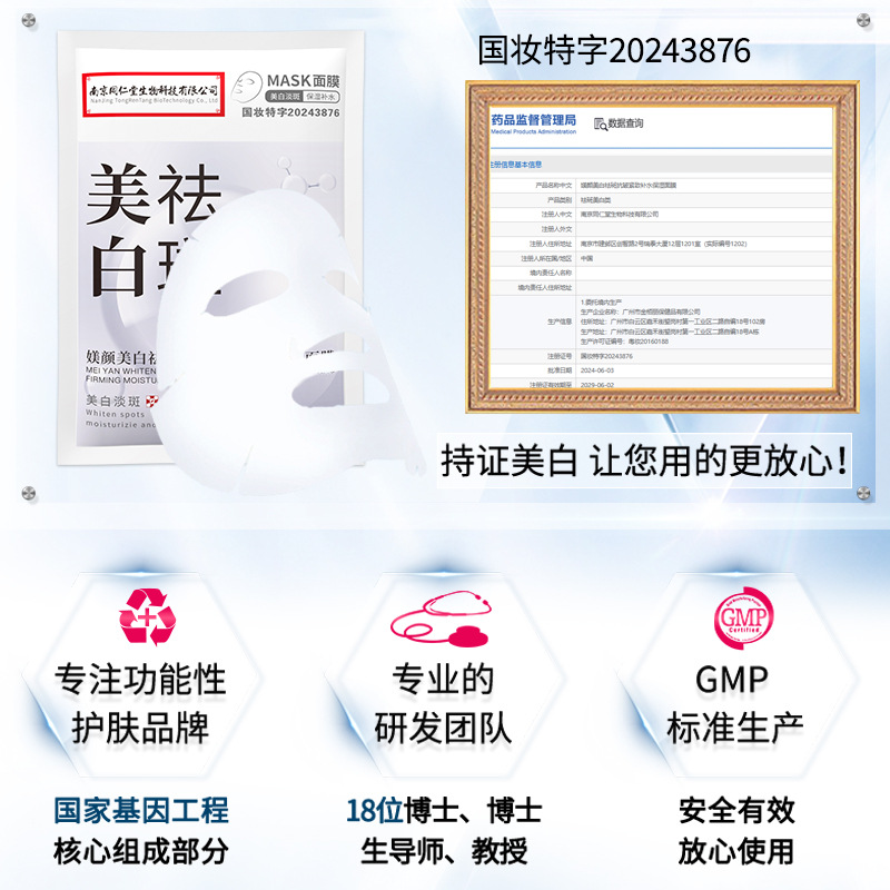 南京同仁堂面膜玻尿酸冻干粉亮肤贴片面膜补水保湿控油提亮精华液
