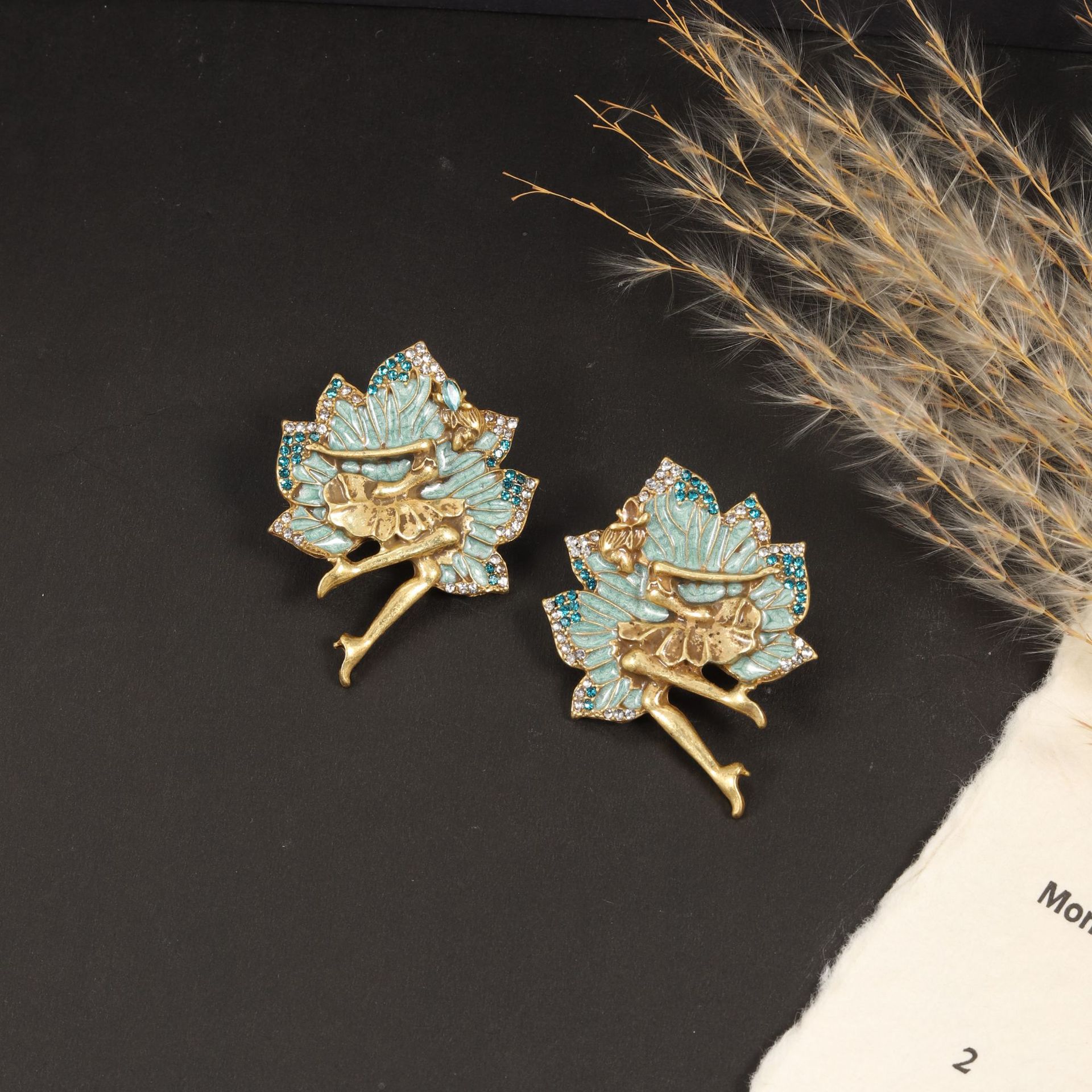 新款镶钻珐琅跳舞女孩耳针外套开衫大气优雅别针女士大衣配饰