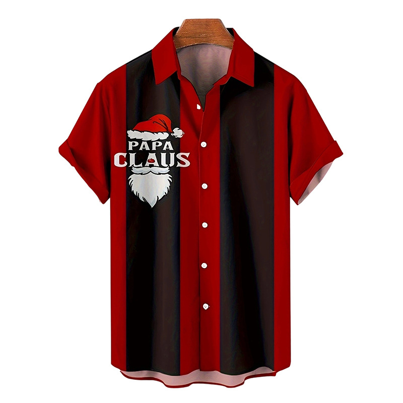 现货夏季新款男士圣诞节数码印花衬衫男士休闲宽松短袖休闲衬衫