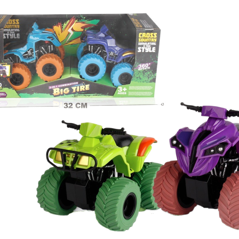 男孩四驱越野惯性车玩具儿童模型车大轮翻斗特技赛车地摊