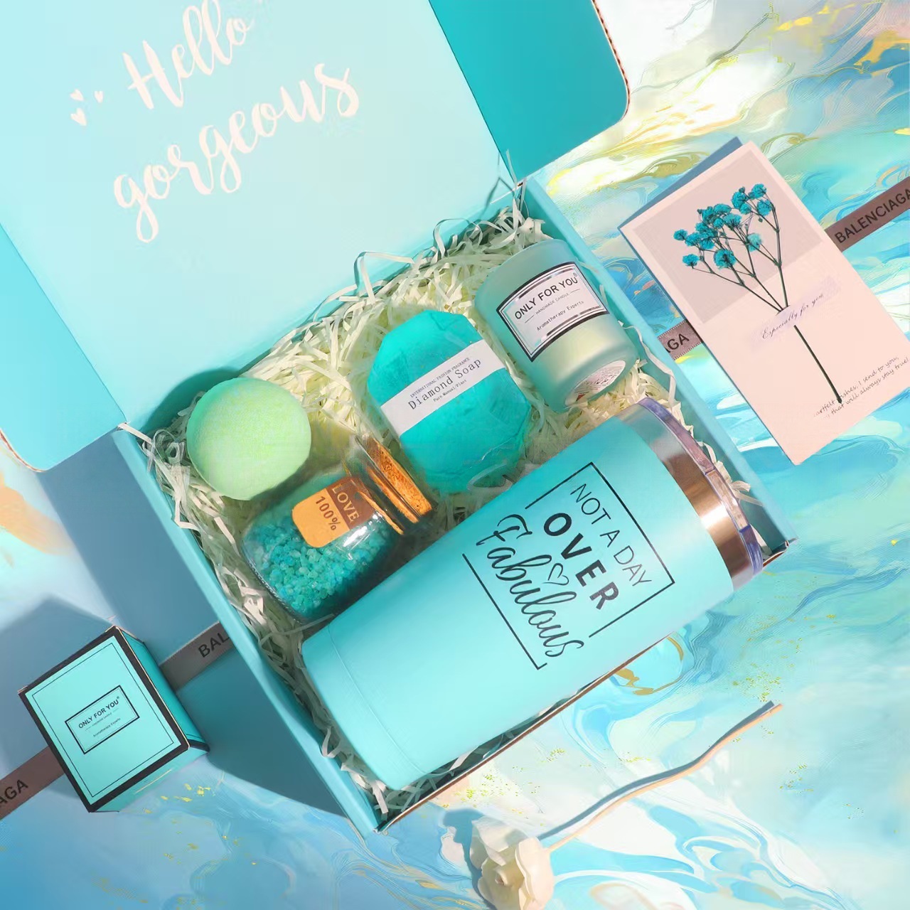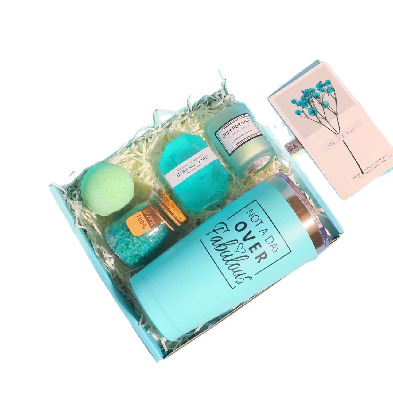 现货跨境装蓝色伴手礼沐浴礼品套装香薰蜡烛礼盒spa香氛礼盒套装