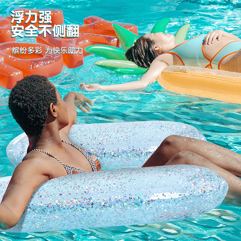 透明PVC亮片浮排水上网布躺椅可折叠充气靠背水上浮排神器