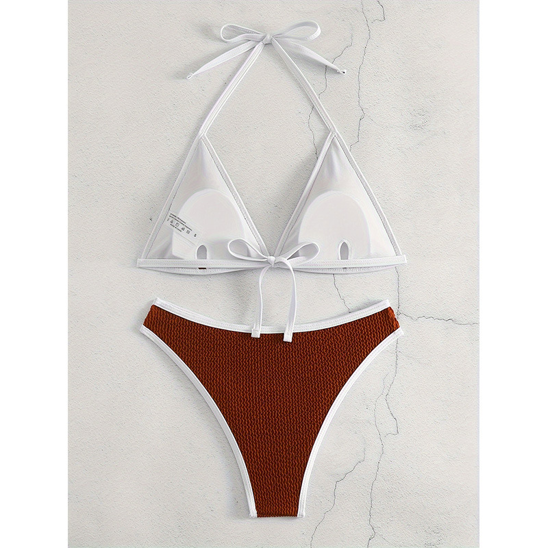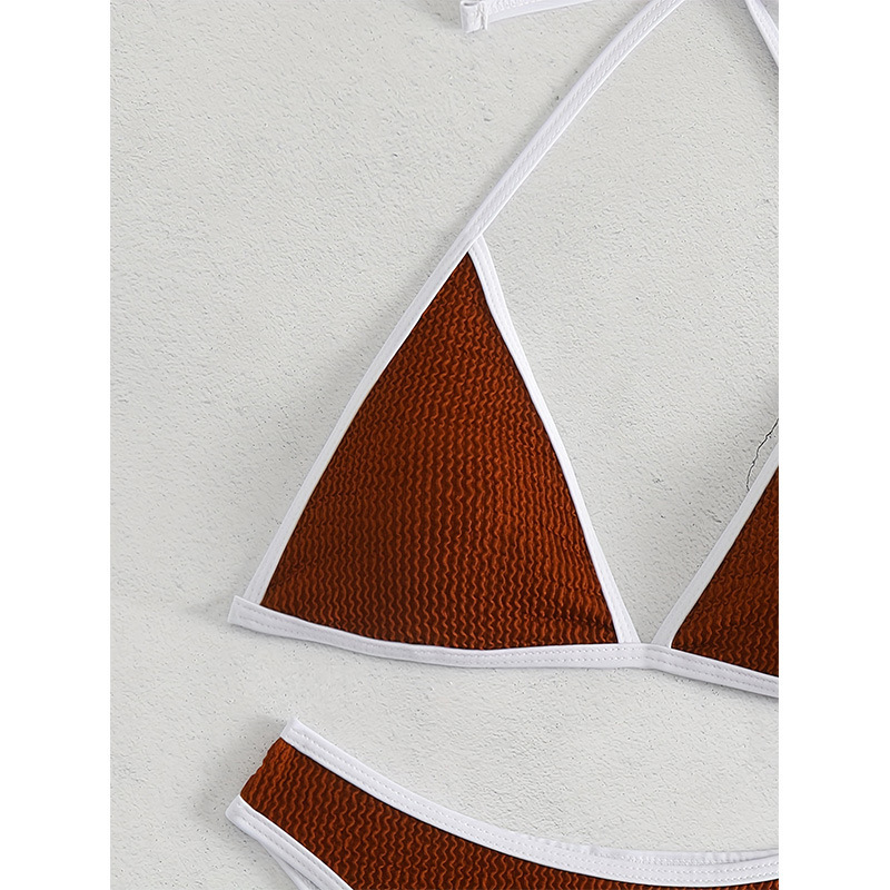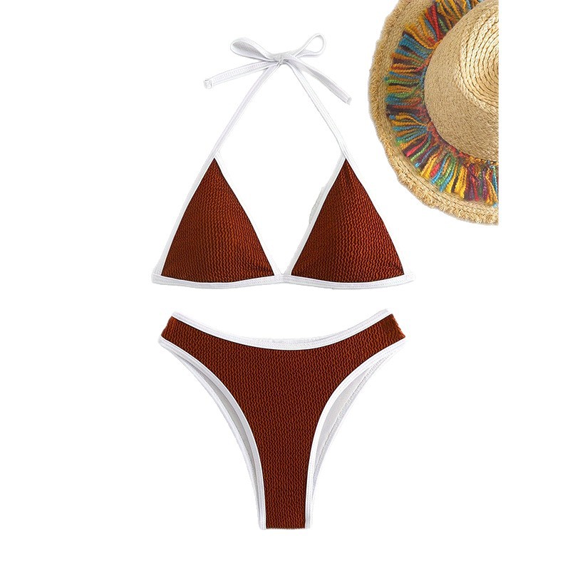 挂脖分体泳衣女比基尼性感欧美新款纯色深V聚拢露背高腰比基尼女