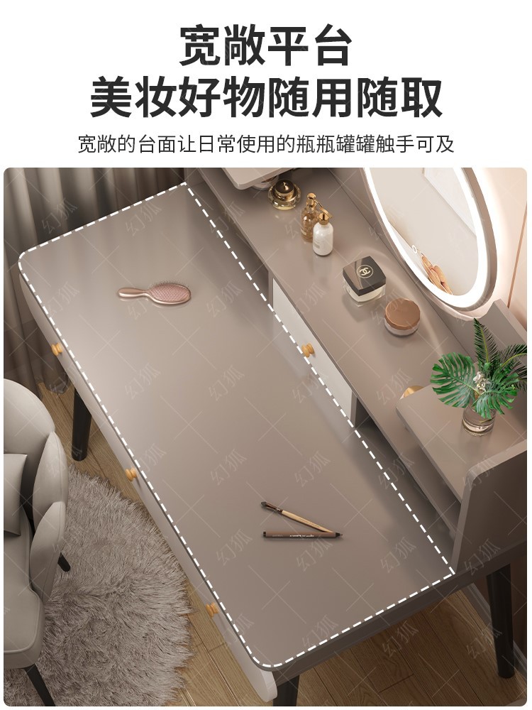 | 颜色 | 【单桌+高清镜】白色 100cm 双层四抽 | 颜色 | 【桌+LED灯镜】灰色 80cm 单层双抽 |