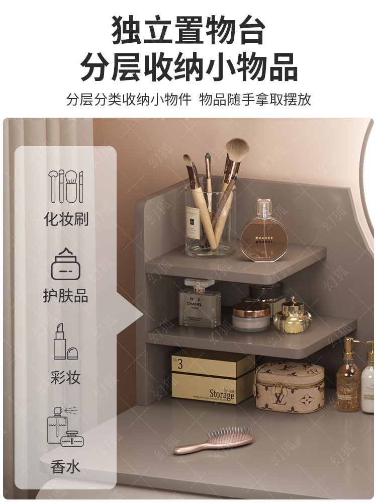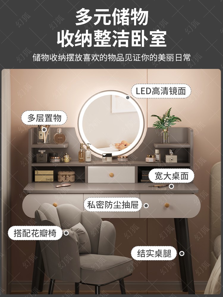 | 颜色 | 【桌+LED灯镜+花瓣椅】白色 单层双抽80cm | 颜色 | 【桌+LED灯镜+花瓣椅】灰色 双层三抽100cm |