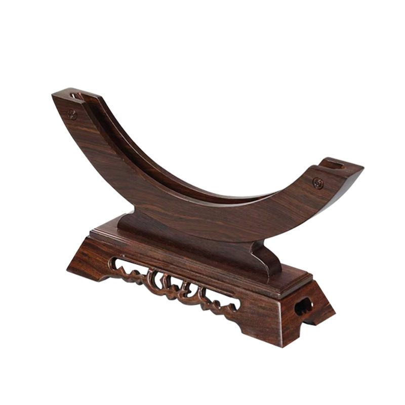 平安扣实木底座红木黑紫檀茶饼瓷盘圆形摆件置物架玉石玉璧玉片架