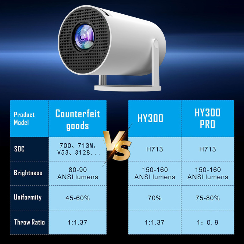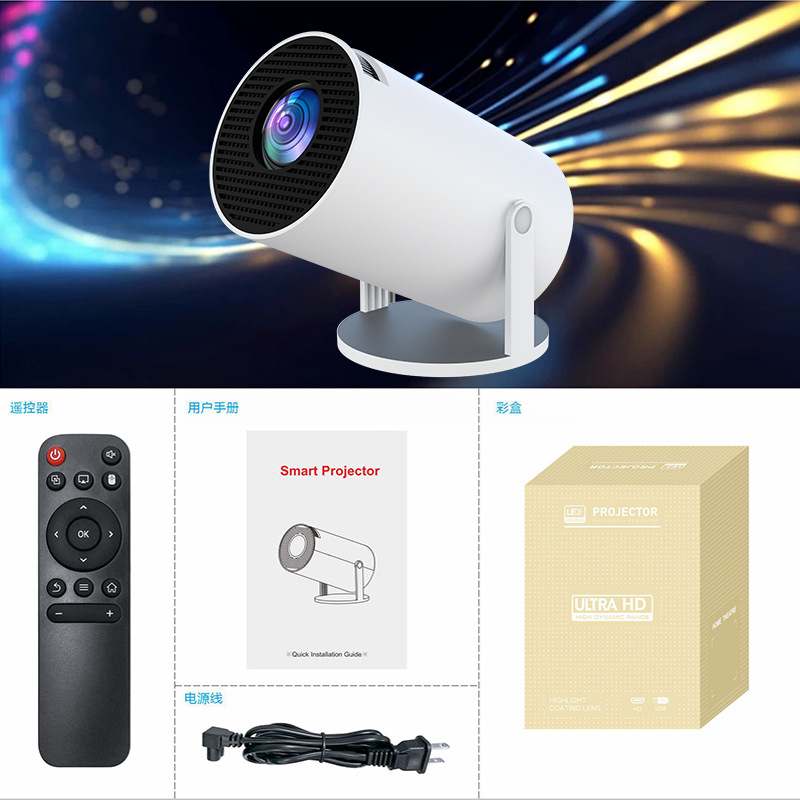 跨境爆款HY300PRO高清投影仪4K安卓家用5G蓝牙短焦便携式投影机