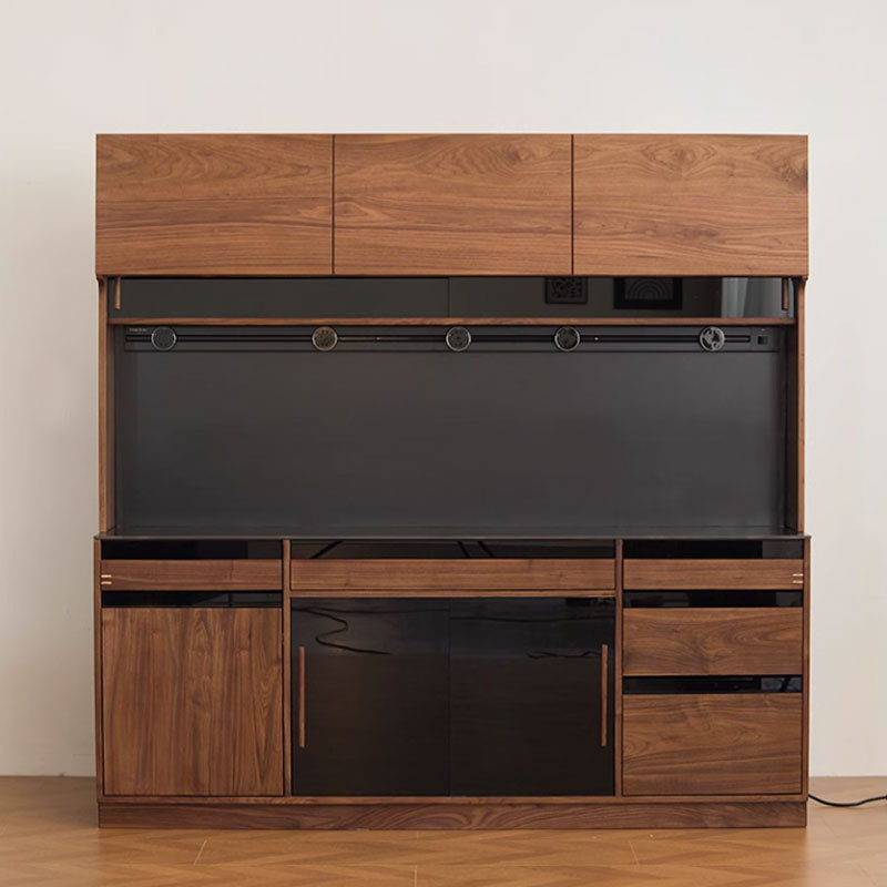 北美黑胡桃木实木餐边柜北欧简约靠墙一体橱柜收纳储物置物柜