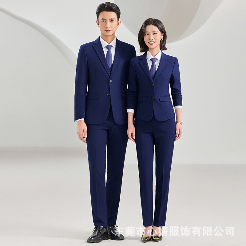 | 颜色 | 男 黑色【外套+裤子+白衬衫】 | 颜色 | 女 宝蓝色【外套+裤子+白衬衫】 |