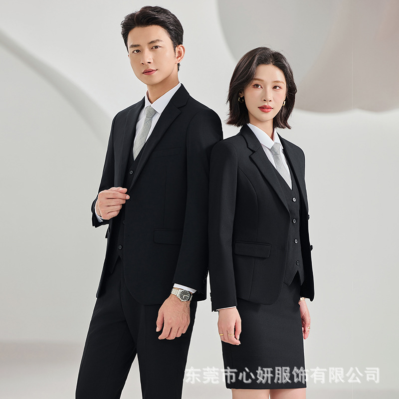 | 颜色 | 女 黑色【外套+短裙】 | 颜色 | 男 宝蓝色【外套+裤子+白衬衫】 |