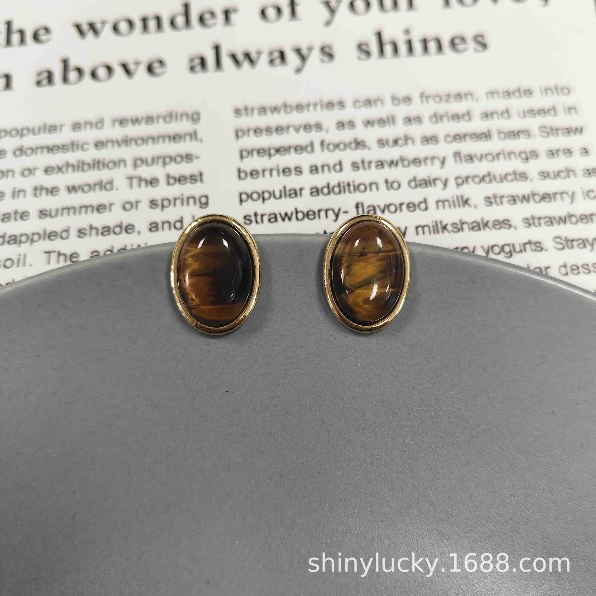 美拉德风复古气质轻奢虎眼石耳钉小众耳环时髦百搭耳环