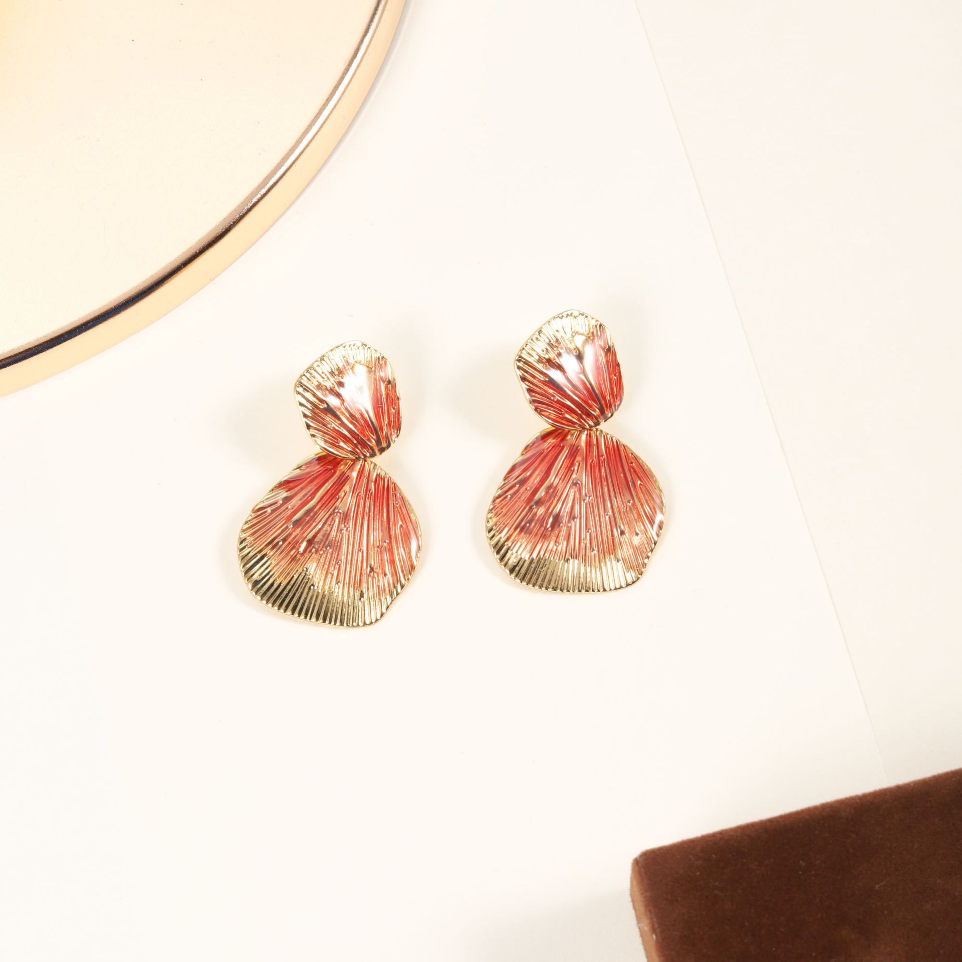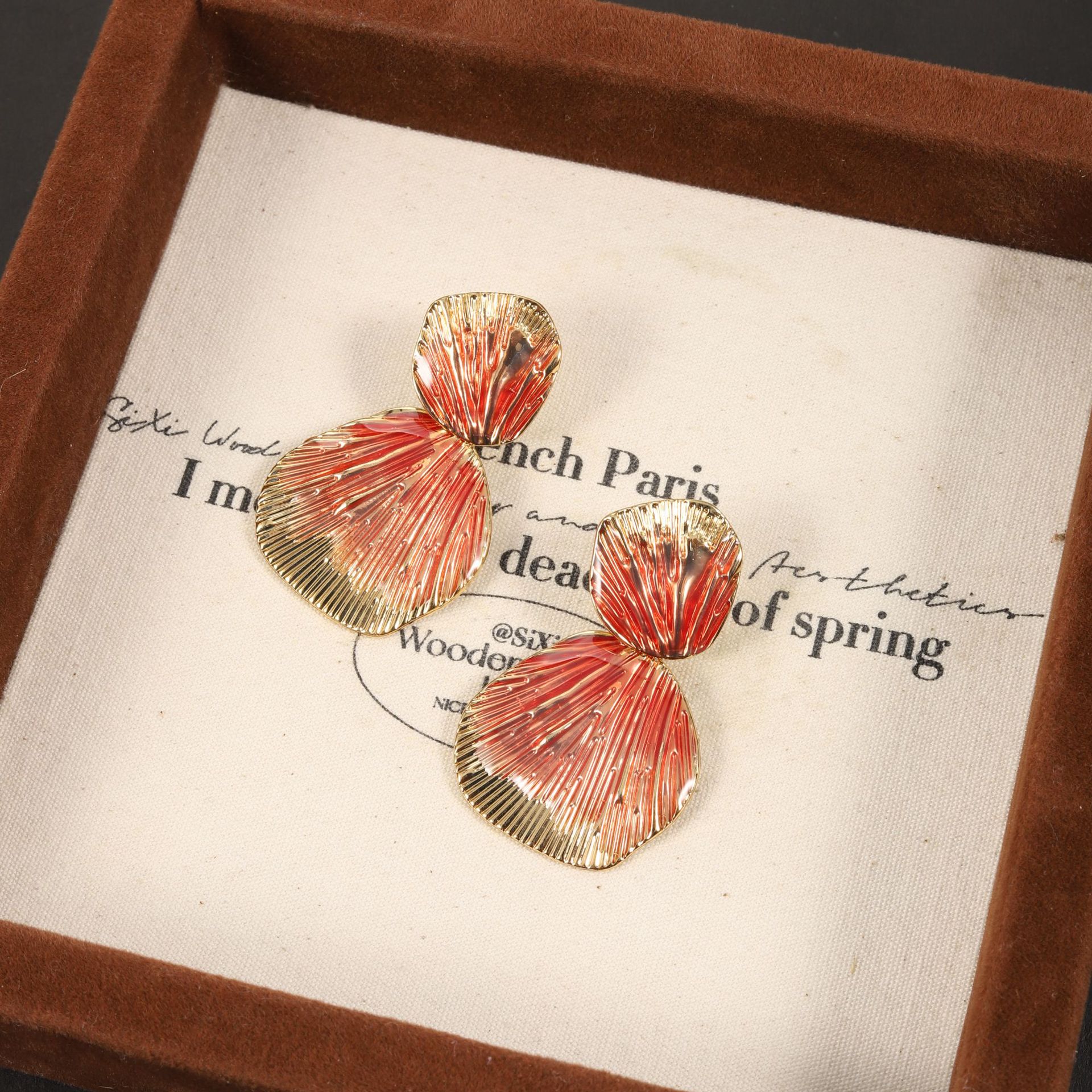 冷淡风简约个性气质金属贝壳纹理耳钉s925银针小众设计感潮流耳环