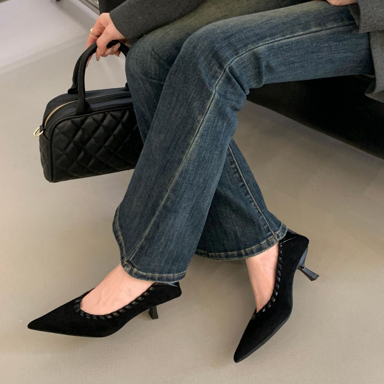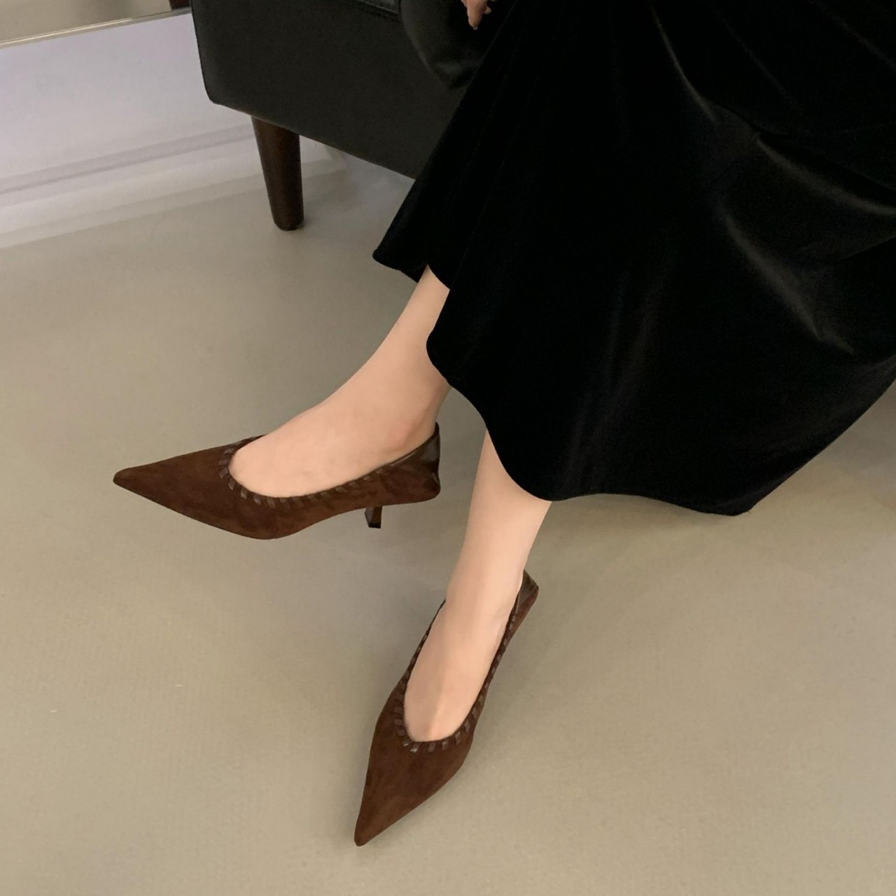 法式尖头绒面单鞋2025年新款秋冬季高端时尚大气舒适百搭通勤女鞋