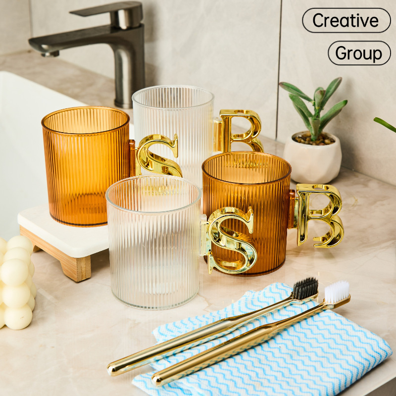 轻奢抽象漱口杯洗漱杯学生情侣家用杯子带手柄LOGO暴富插牙刷杯