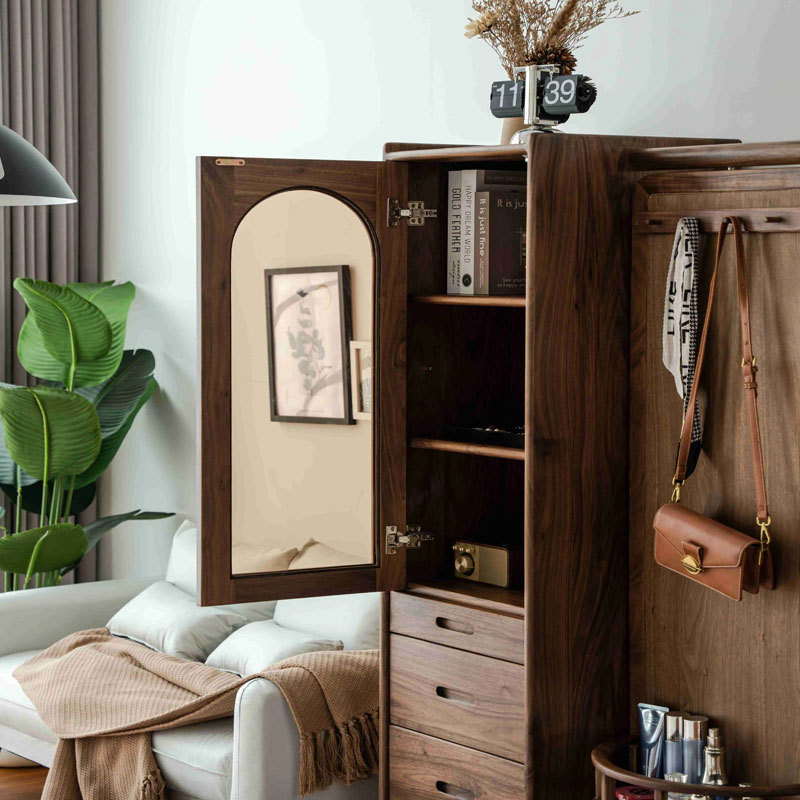 黑胡桃衣帽架穿衣镜一体实木化妆镜柜多功能储物柜落地旋转全身镜