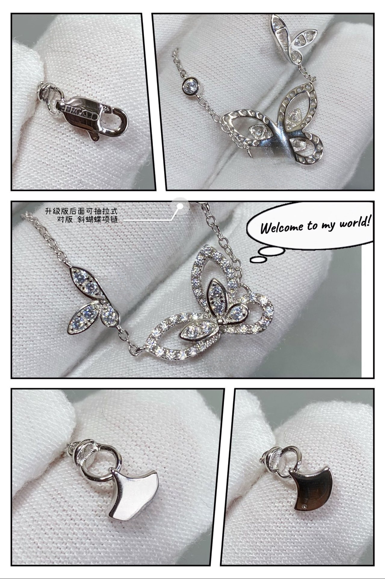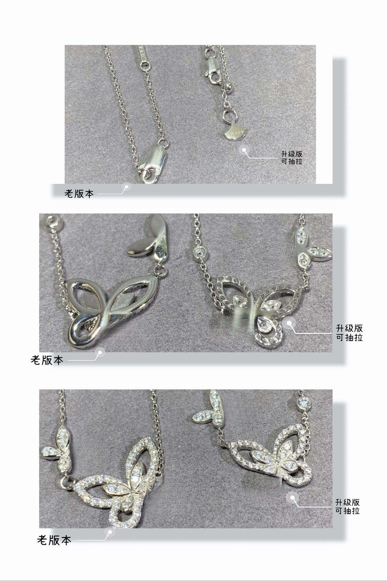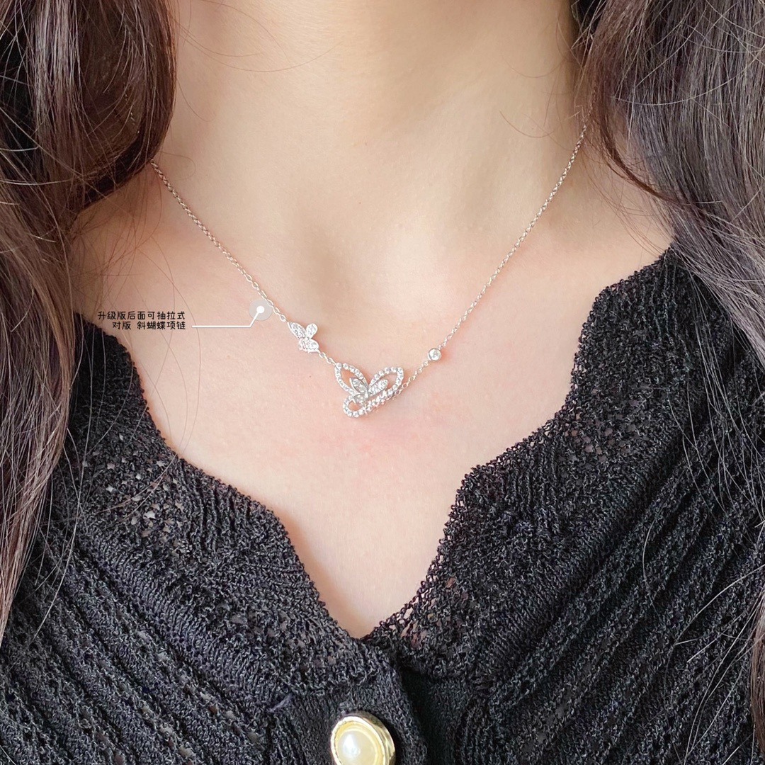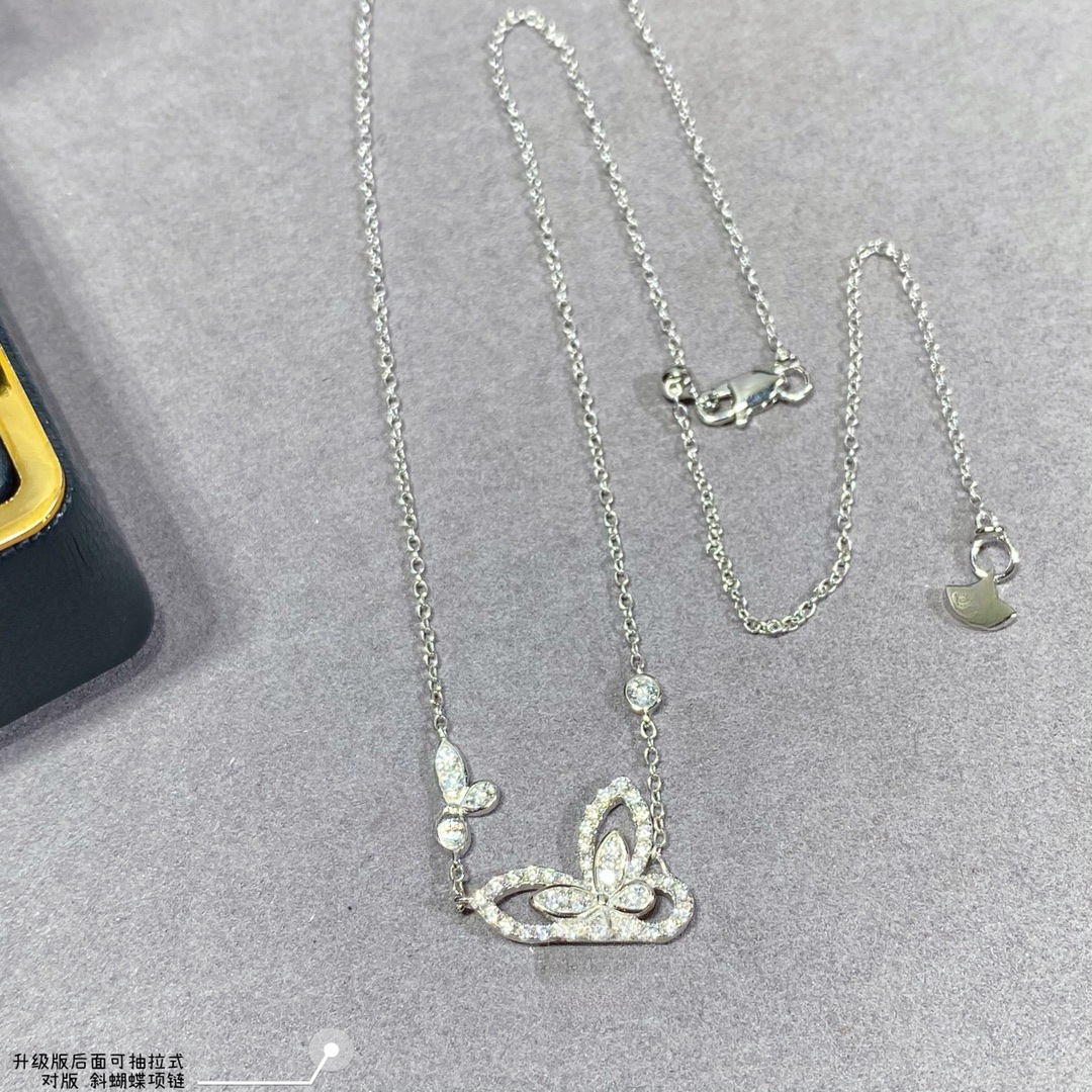 高版本v金格家幻影双蝴蝶项链女重叠镶钻CNC精工版五蝴蝶吊坠批发