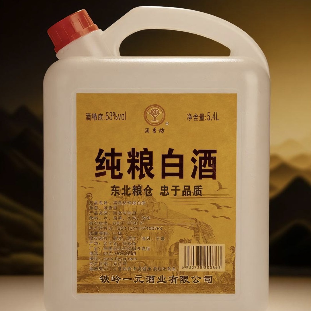 东北厂家整箱大桶装白酒5.4L装*4桶53度清香型散装泡酒专用白酒