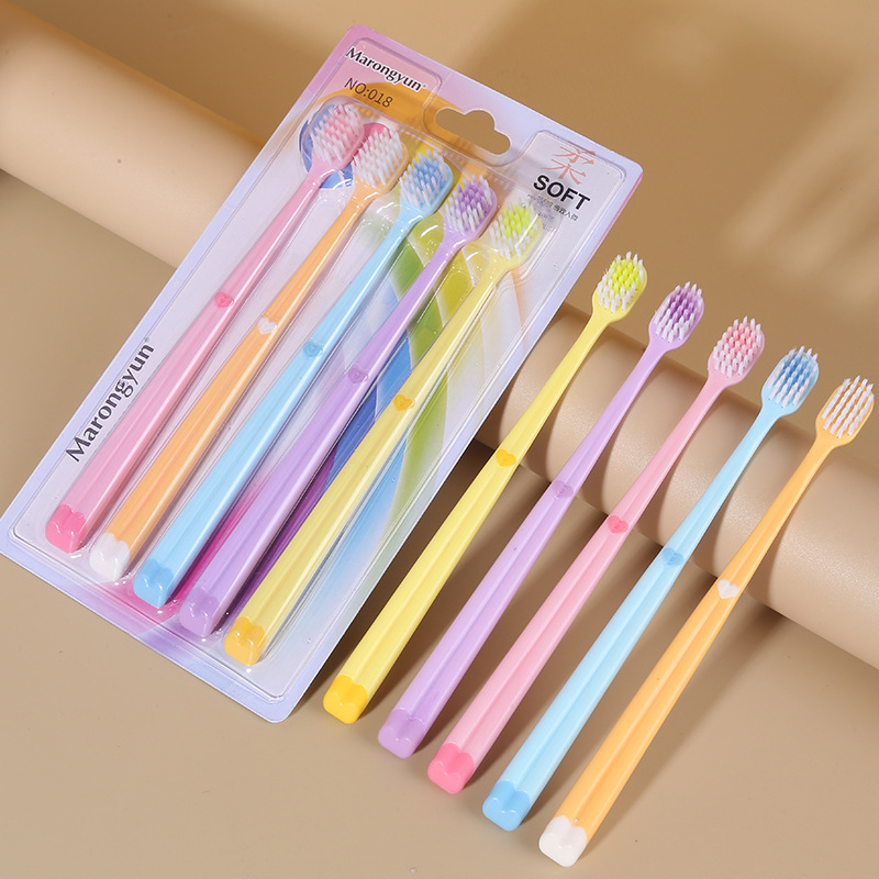 5支装牙刷男女成人马卡龙色软毛牙刷超市家用爱心款牙刷批发