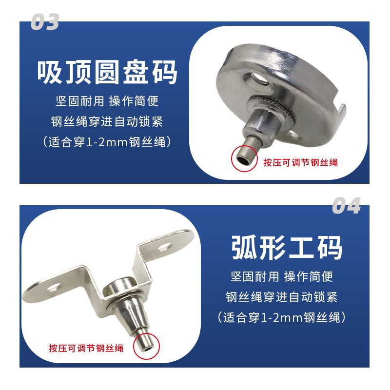| 材质 | 不锈钢+铜+铁 | 规格 | 圆盘码+膨胀钉吊码+0.5米 |
