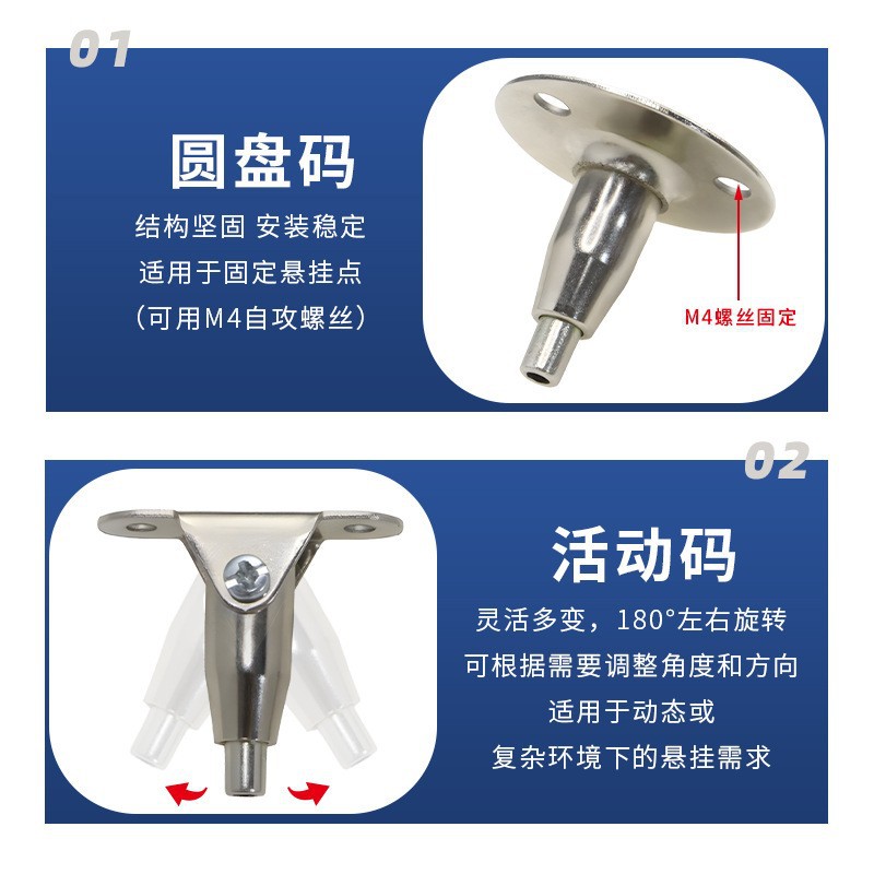 | 规格 | 活动码+膨胀钉吊码+3米 | 规格 | 吸顶码+膨胀钉吊码+0.5米 |