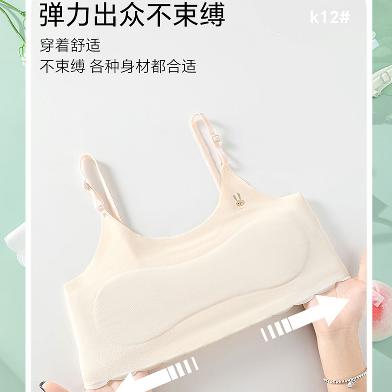 夏季儿童发育期冰丝无痕内衣少女文胸固定杯薄胸垫吊带小背心抹胸
