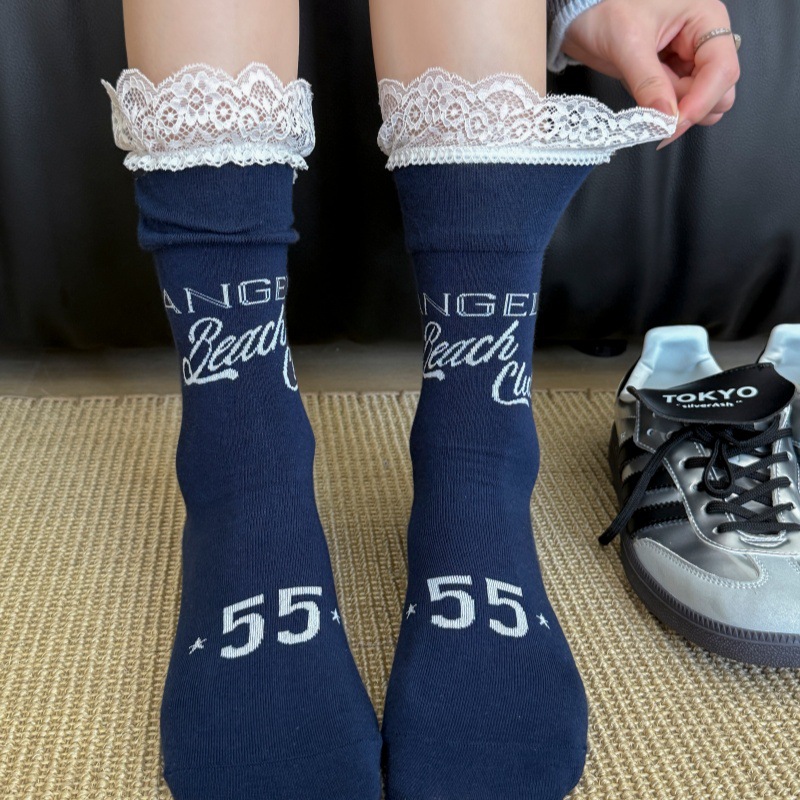 欧美风袜子2025秋季新款蕾丝花边中筒袜韩系运动洛丽塔ins堆堆袜