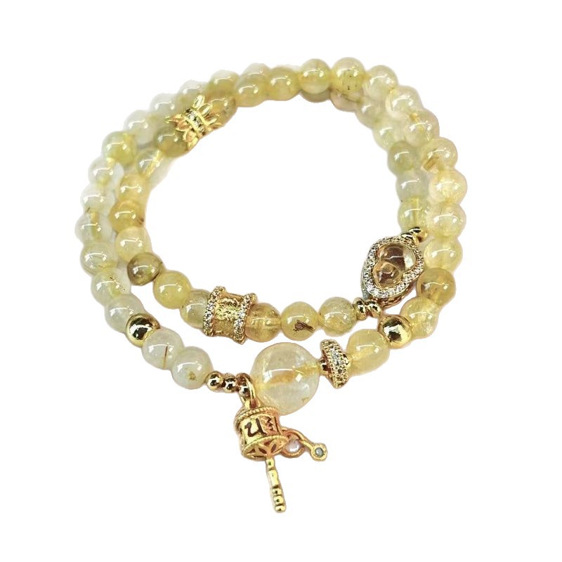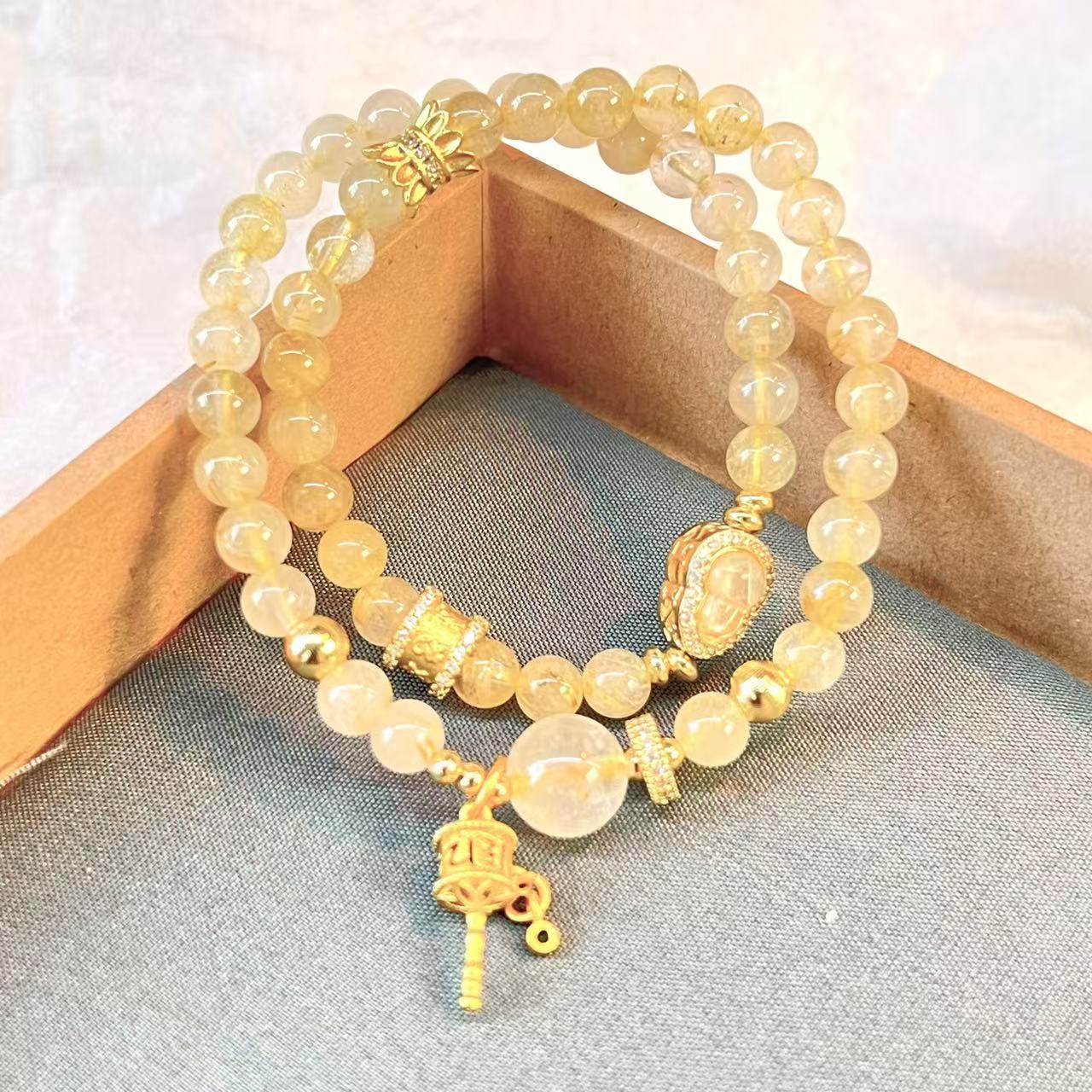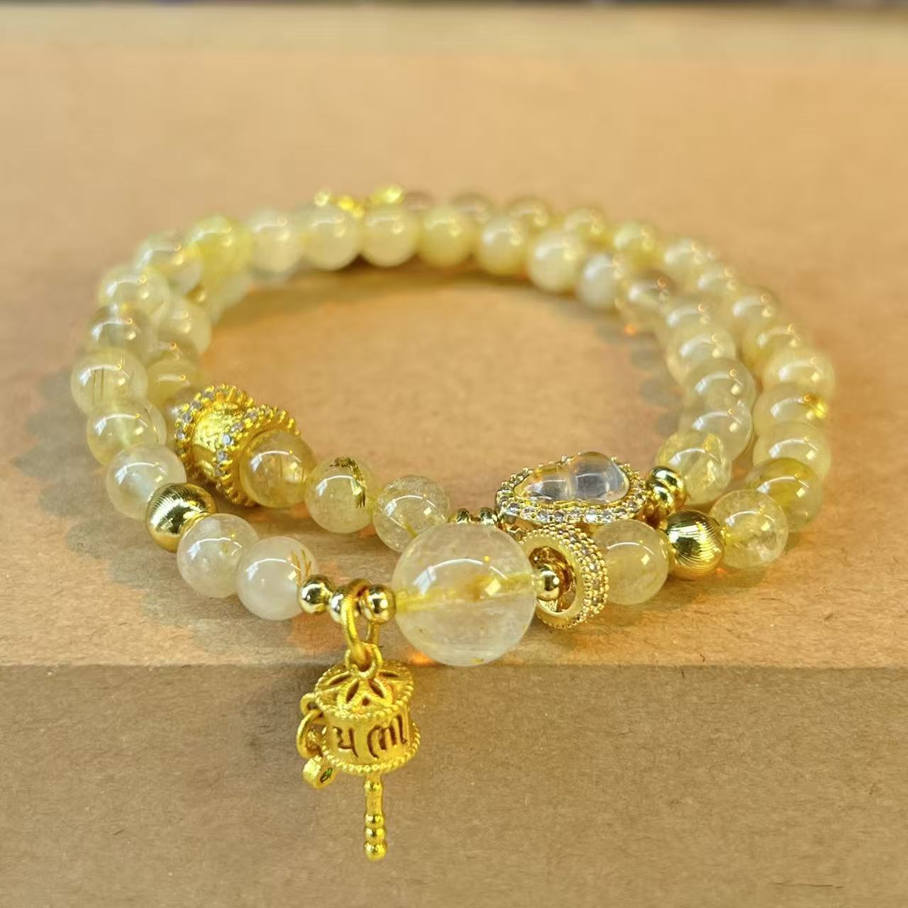 6mm天然金发晶手串女双圈叠戴葫芦招财纳福转财富贵吉祥手链批发