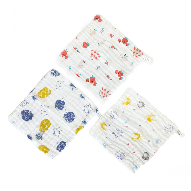 森澜婴儿全棉A类六层高密印花口水巾新生儿柔软亲肤洗脸吸水毛巾