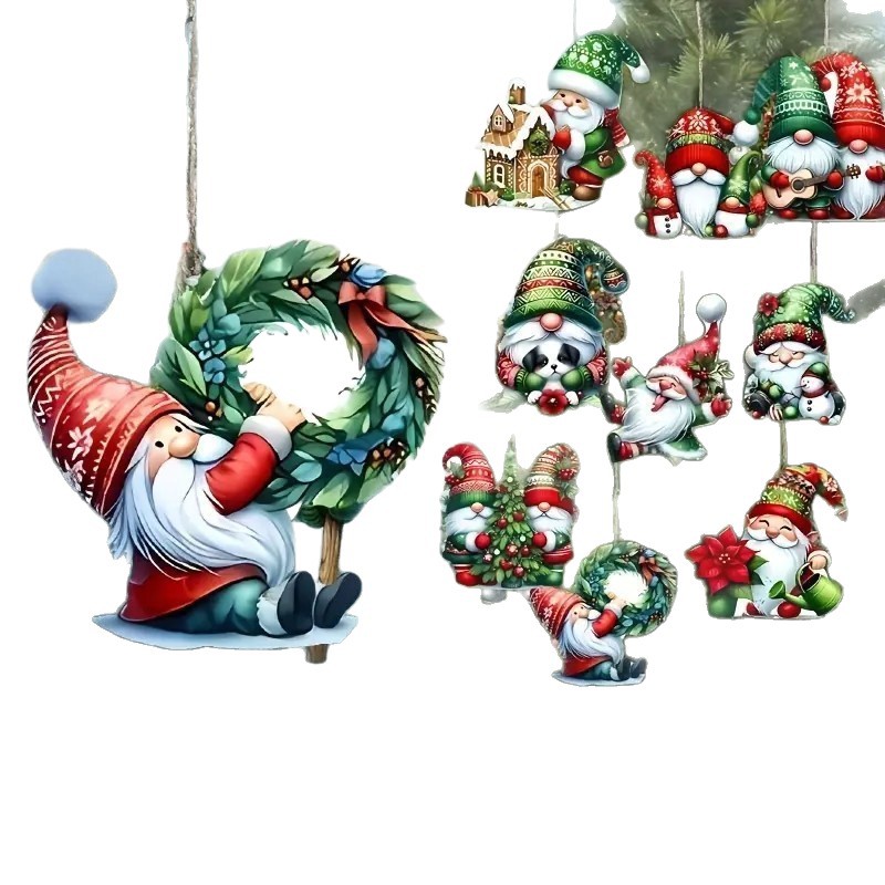 跨境木制圣诞节装饰雪人侏儒老人圣诞树装饰室内室外装饰木制挂件