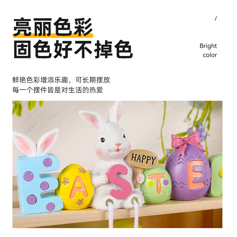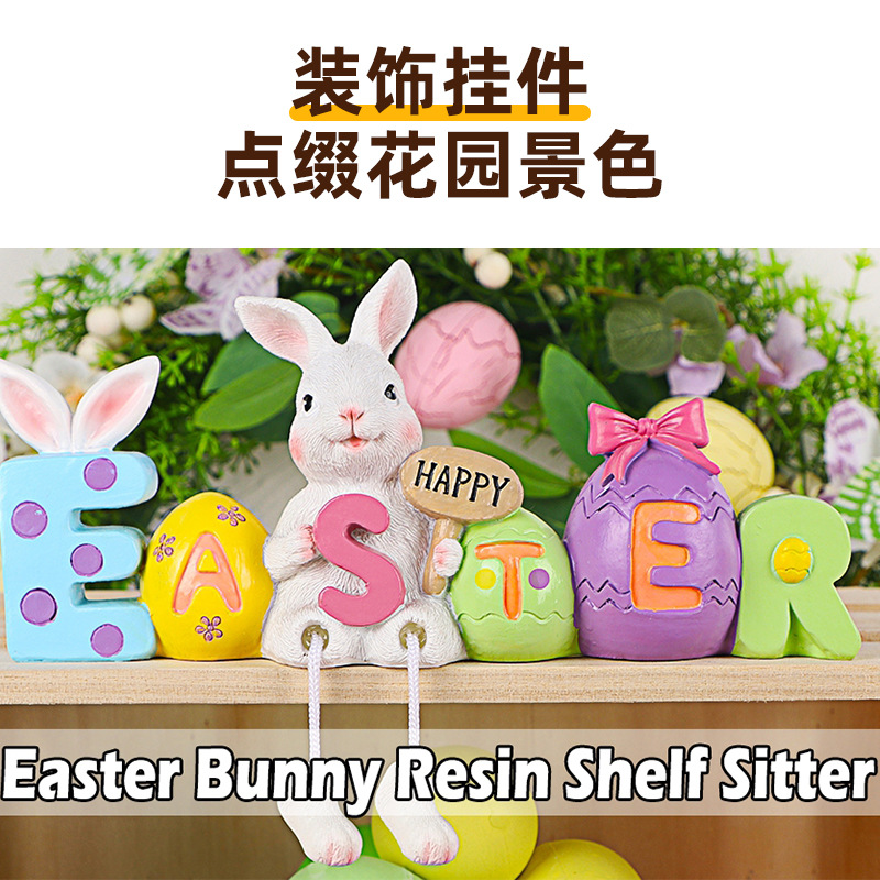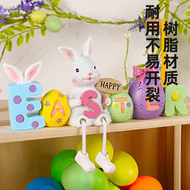 复活节桌面装饰品树脂兔子架保姆带悬挂腿复活节快乐兔子雕像