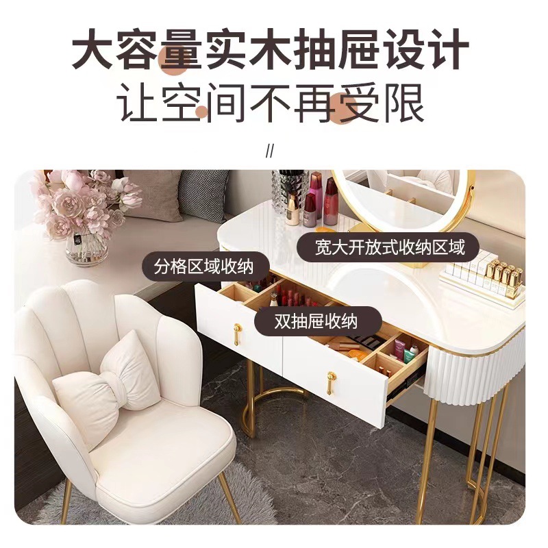 | 颜色 | 倾城灰白金80CM单桌+智能镜 +灰金花瓣椅+抱枕 | 颜色 | 倾城灰白金100CM单桌+智能镜 +灰金花瓣椅+抱枕 |