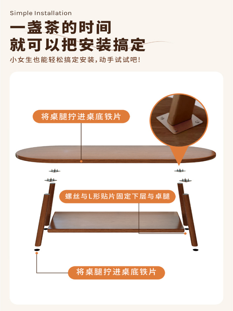 | 颜色 | 【双层置物椭圆双层】烟霞胡桃色80*40*42|甄选加粗桌腿 | 颜色 | 【匠心用料加厚升級进口品质】100*48*42屿山雪松木色|加厚多层环保木板+甄选加粗桌腿 |