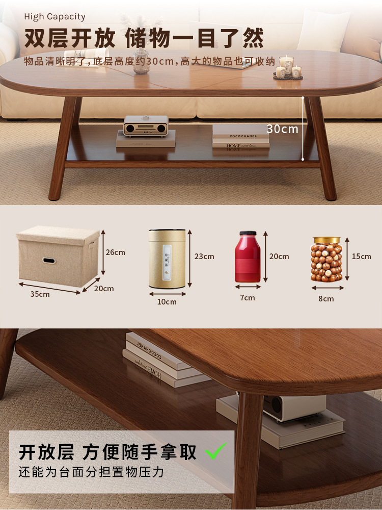 | 颜色 | 【加高款双层置物椭圆双层】屿山雪松木色80*48*42|甄选加粗桌腿 | 颜色 | 【匠心用料♚加高加厚♚进口品质】120*60*52烟霞胡桃色|加厚多层环保木板+甄选加粗桌腿 |