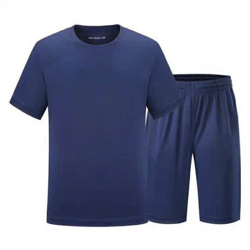 夏季体能服户外训练体能服圆领速干运动服套装夏季深蓝色速干服