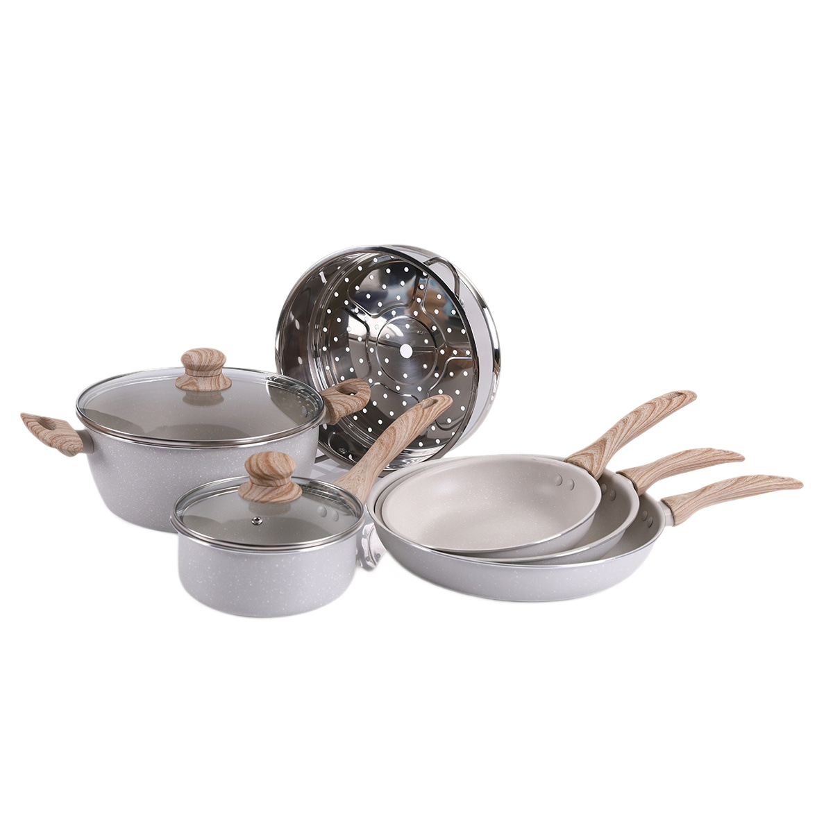 跨境家用麦饭石锅具套装不粘锅平底锅炒锅奶汤锅六件套礼品锅