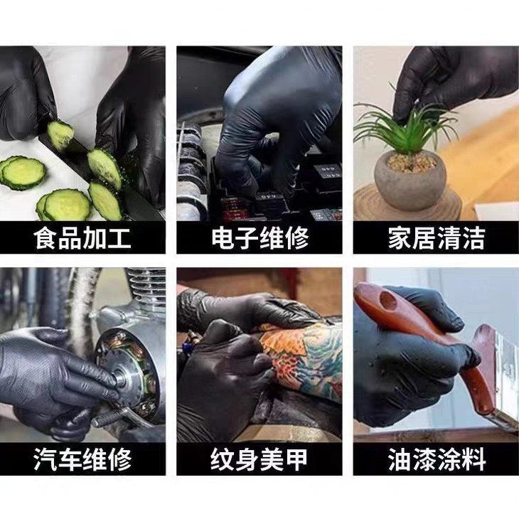 特厚一次性手套钻石纹丁腈橡胶防滑耐磨耐油污机械汽修厂防护手套