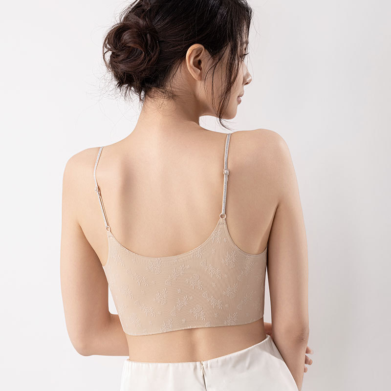 秋冬新款国风提花竹叶美背心内衣固定杯无痕无钢圈性感吊带文胸女