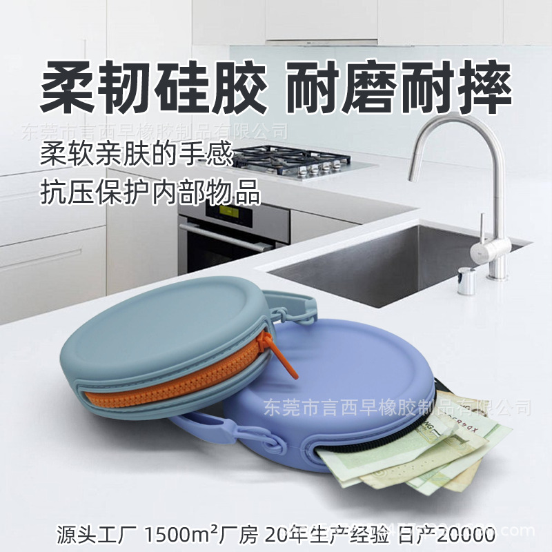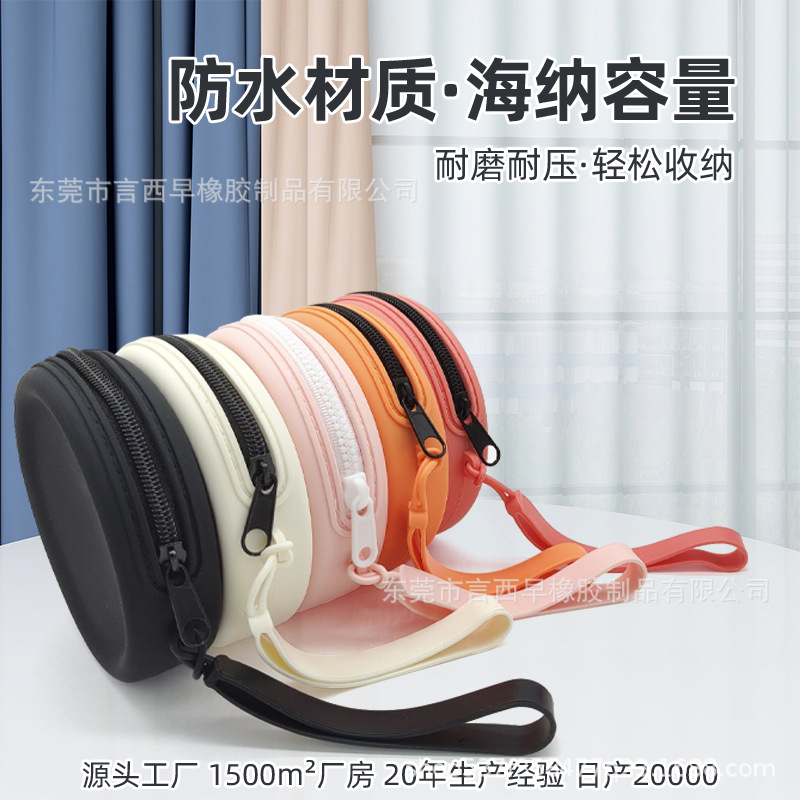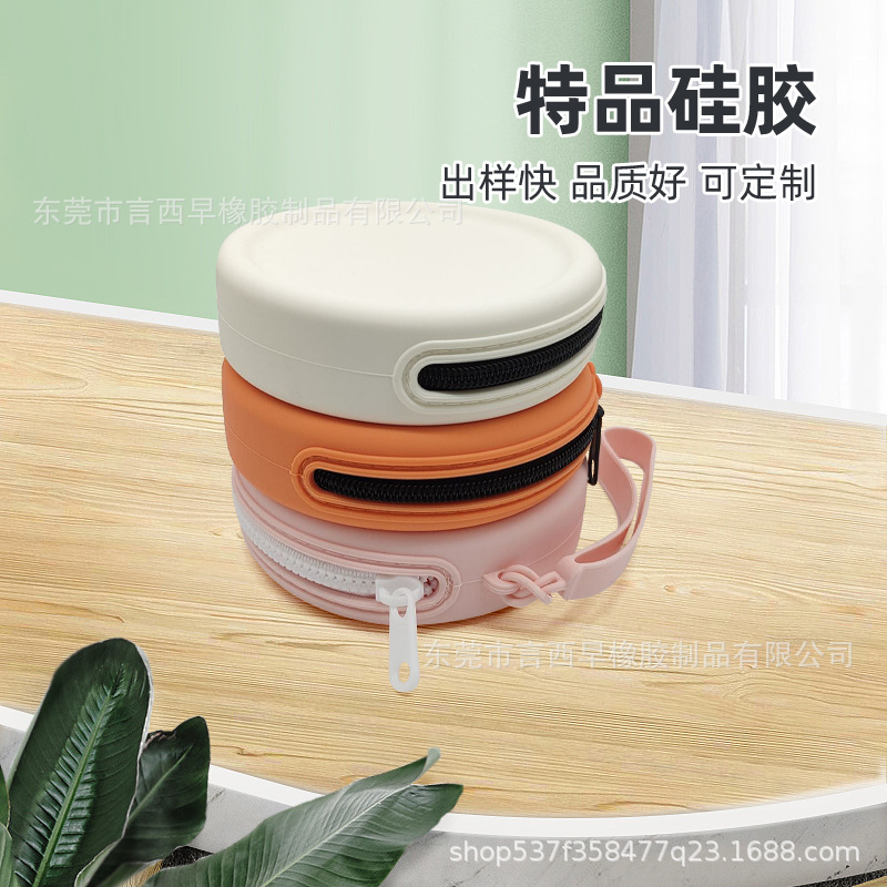 亚马逊硅胶零钱包小钱包硅胶耳机首饰简约圆形收纳包挂件防水抗压