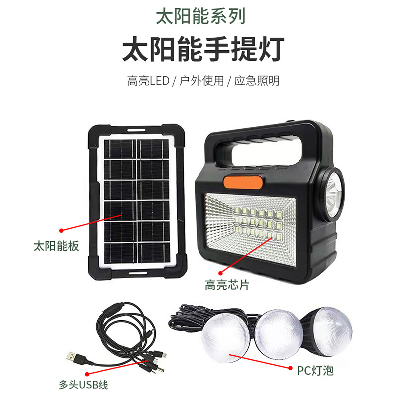 现代新款户外太阳能手提灯家用应急野外露营夜市电池板LED灯便携