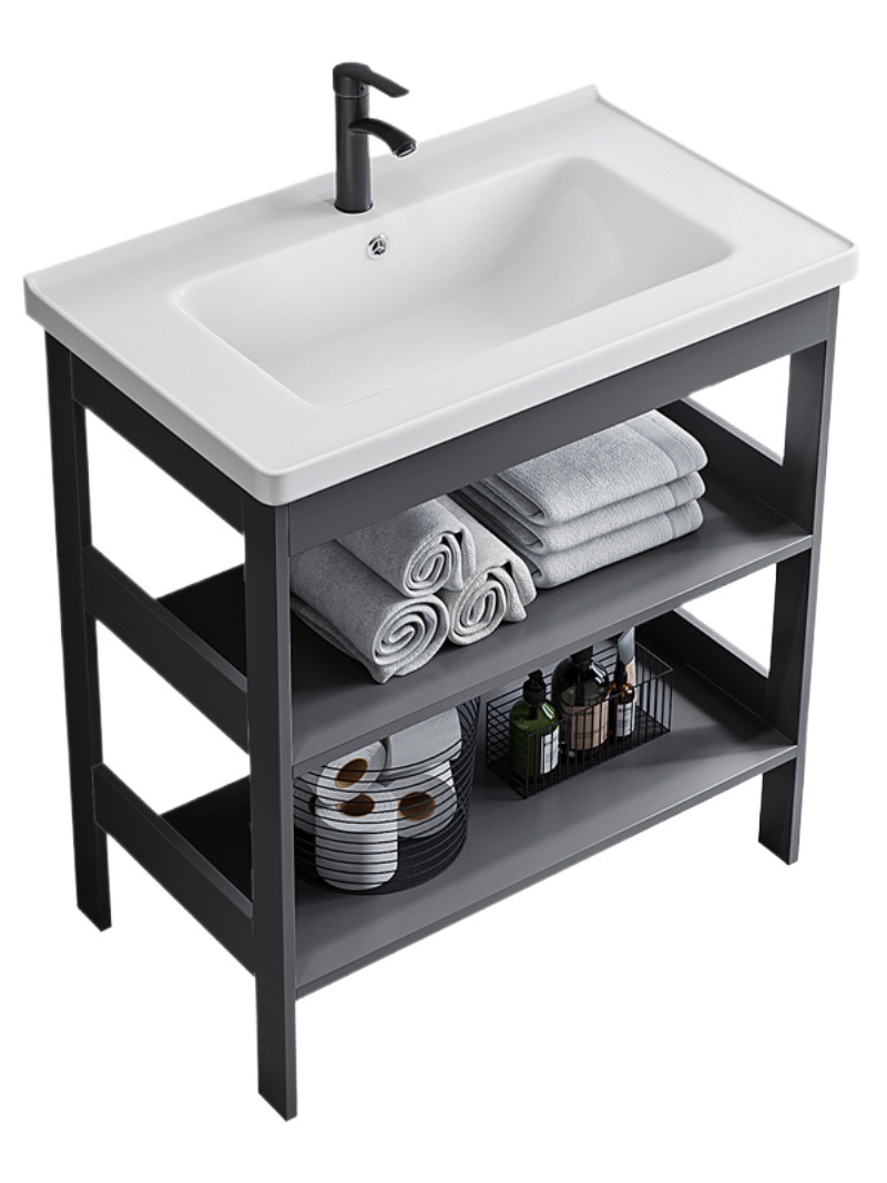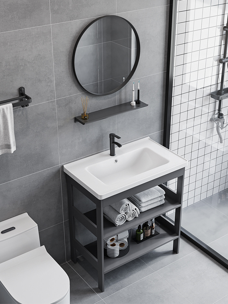 落地式洗手盆柜组合卫生间一体陶瓷盆立柱洗脸盆家用洗漱台太空铝