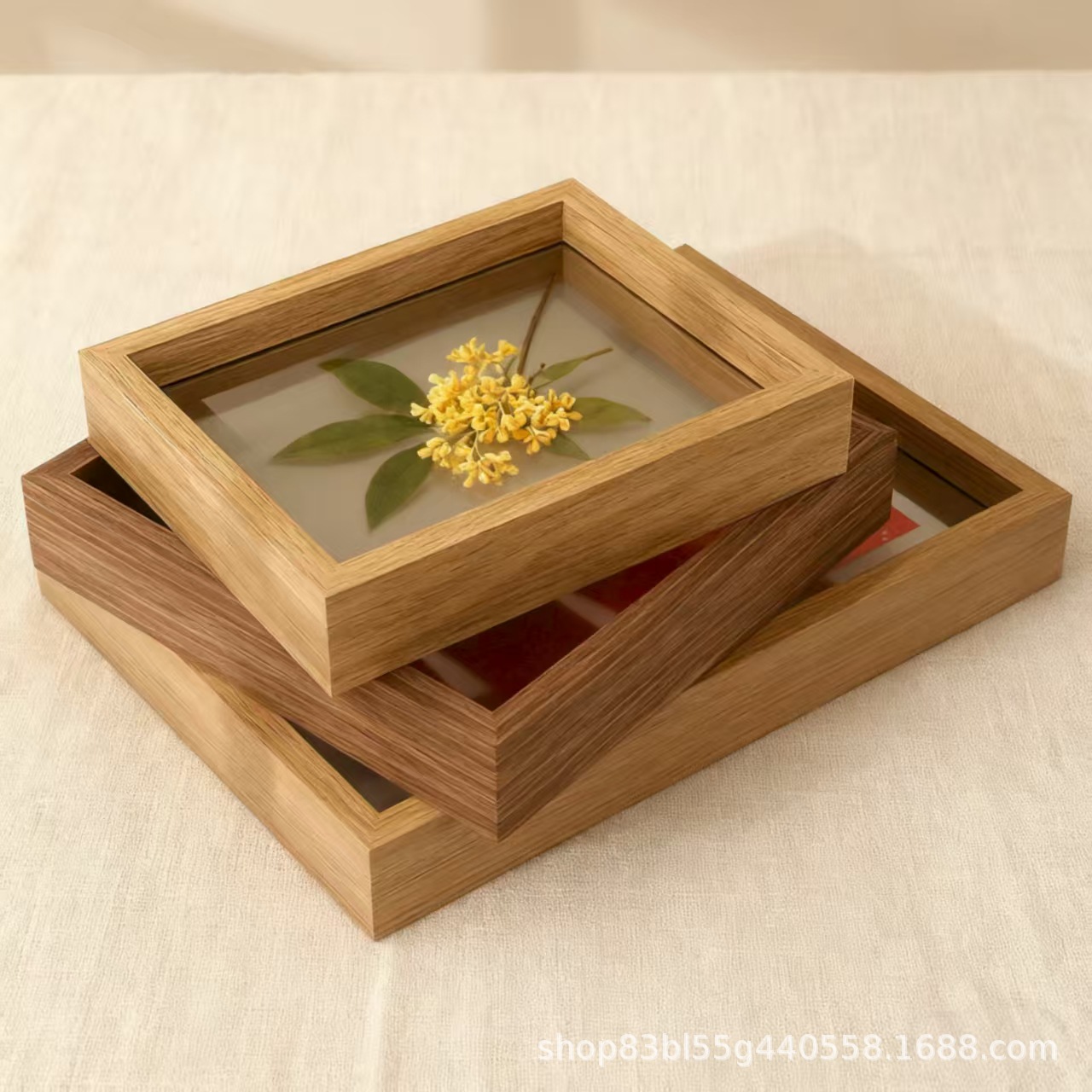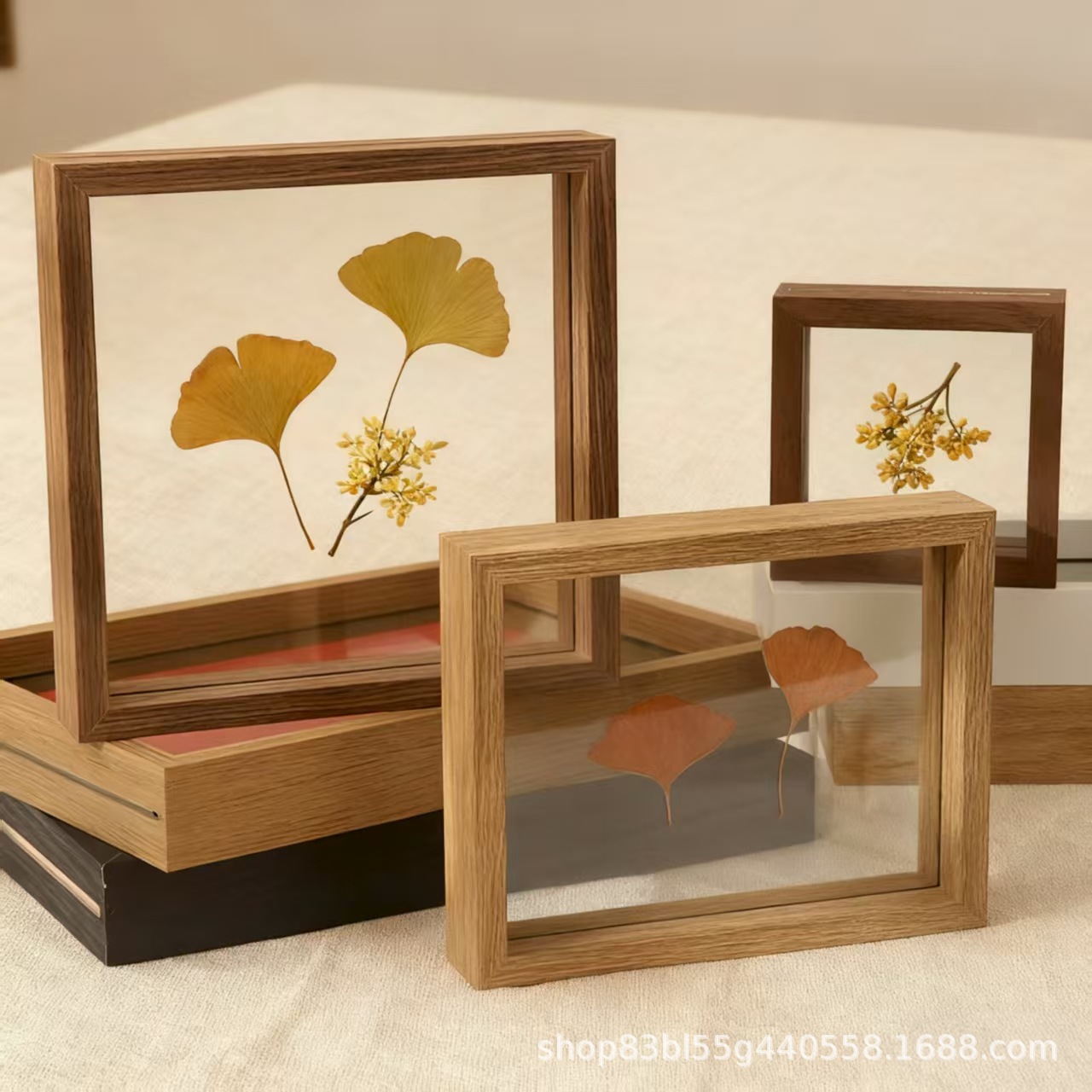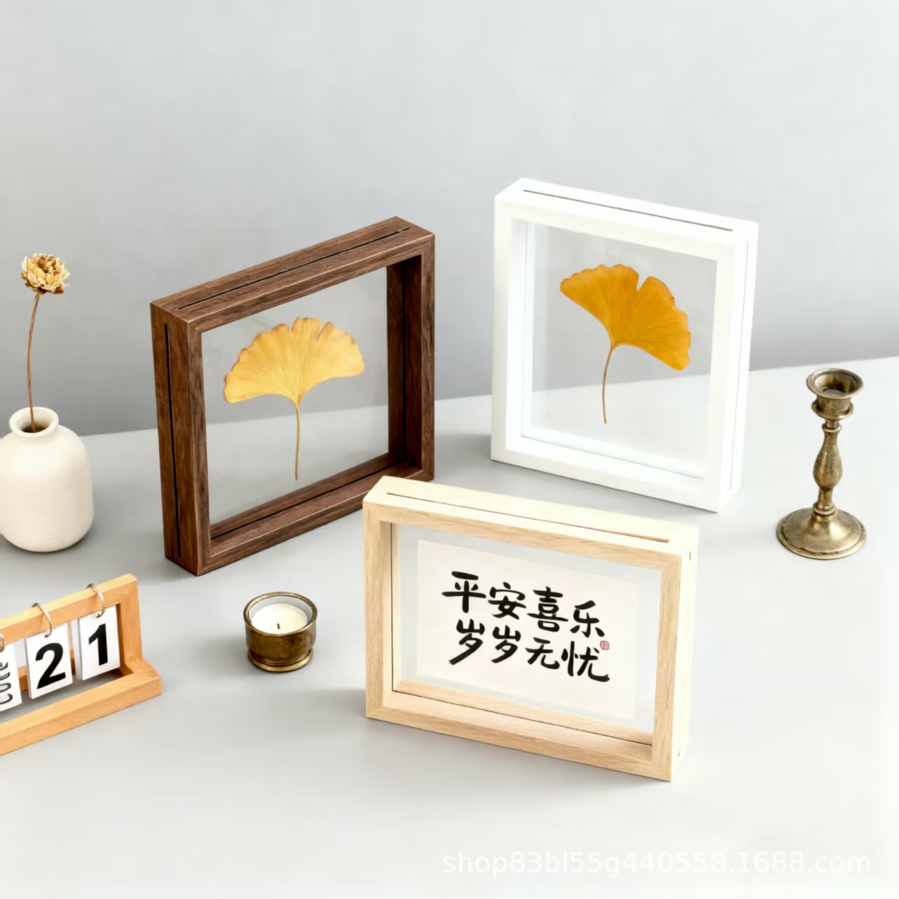 双面透明玻璃相框祝福卡片摆台植物标本创意画框木质书法装裱框